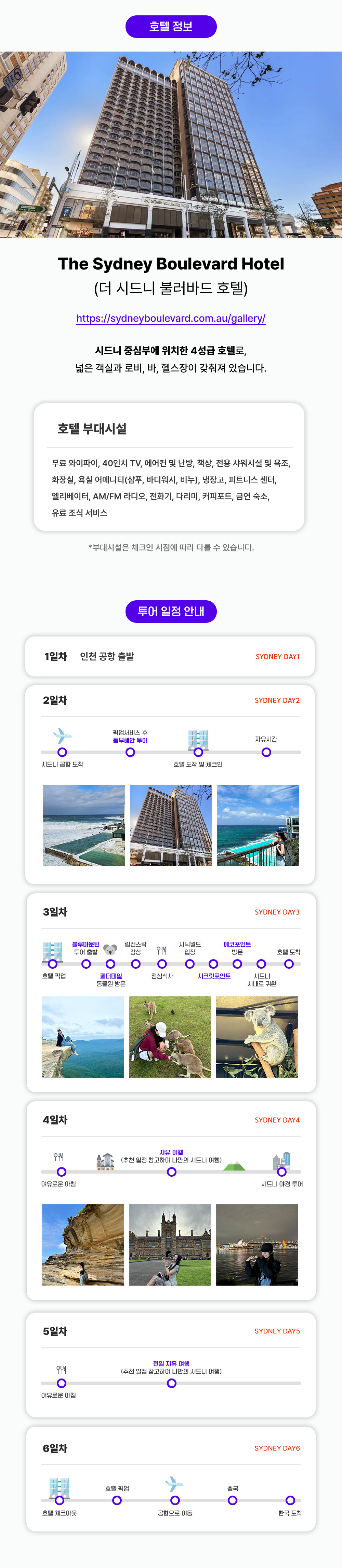 4. 시드니 도시 특성상 호텔은 2인 1실로 진행됩니다.