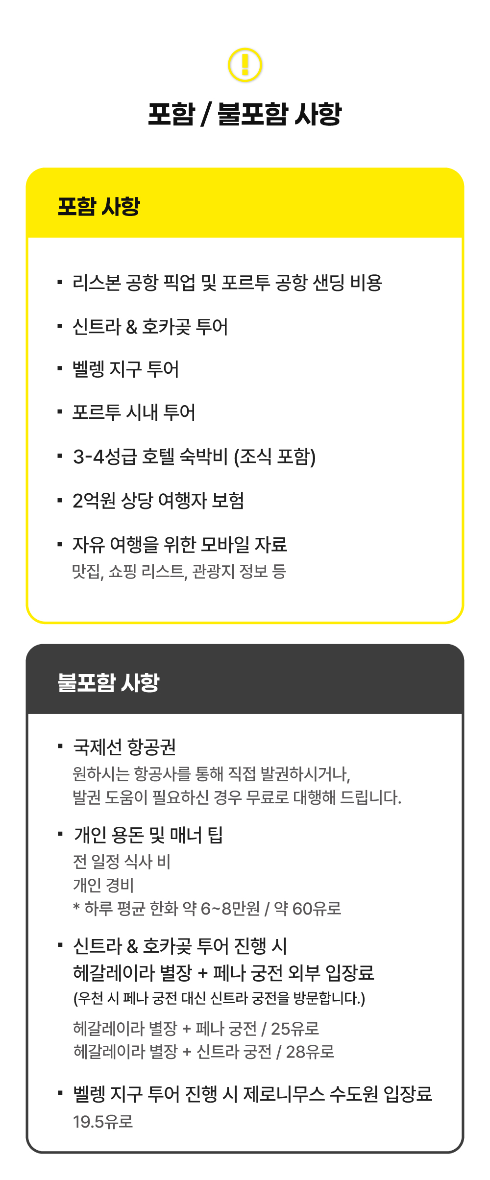 신트라& 호카곶 투어 진행 시 헤갈레이라 별장 + 페나 궁전 외부 입장료 : 25 유로 (우천 시 페나성 대신 신트라 궁전 방문 : 28유로)