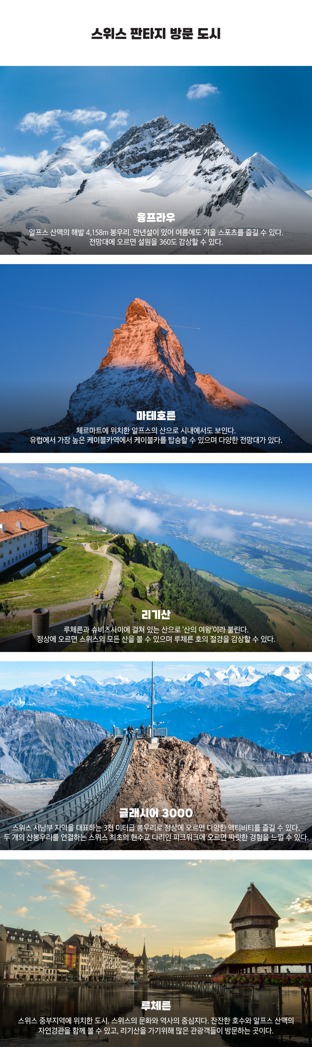 • ✔ 3천미터급 알프스 봉우리 3곳 방문_융프라우, 마테호른, 글래시어 3000