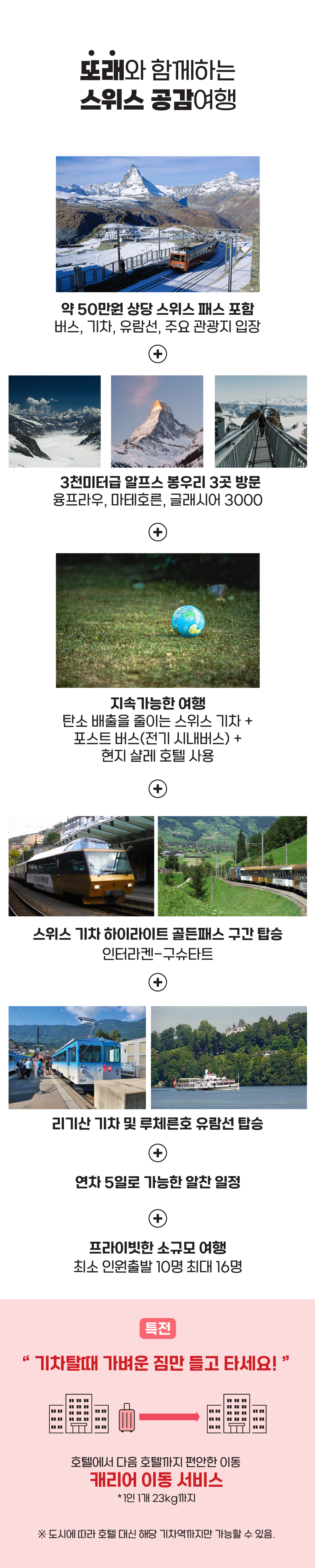 • 🍀 지속가능한 여행 추가_탄소배출을 줄이는 기차,포스트 버스,현지 샬레 호텔 사용