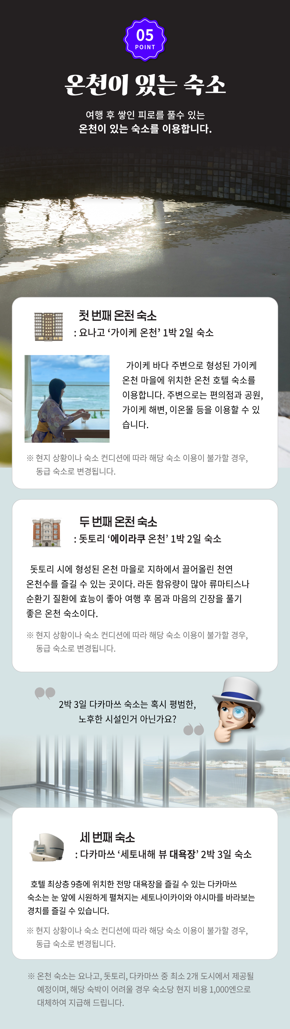 • ✔ 대욕장이 있는 숙소 방문 (최소 2곳 이상)