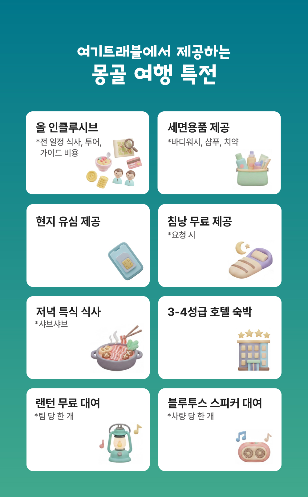 · 개인 사정으로 여행을 취소할 경우, 특별 취소 약관 규정을 따릅니다.