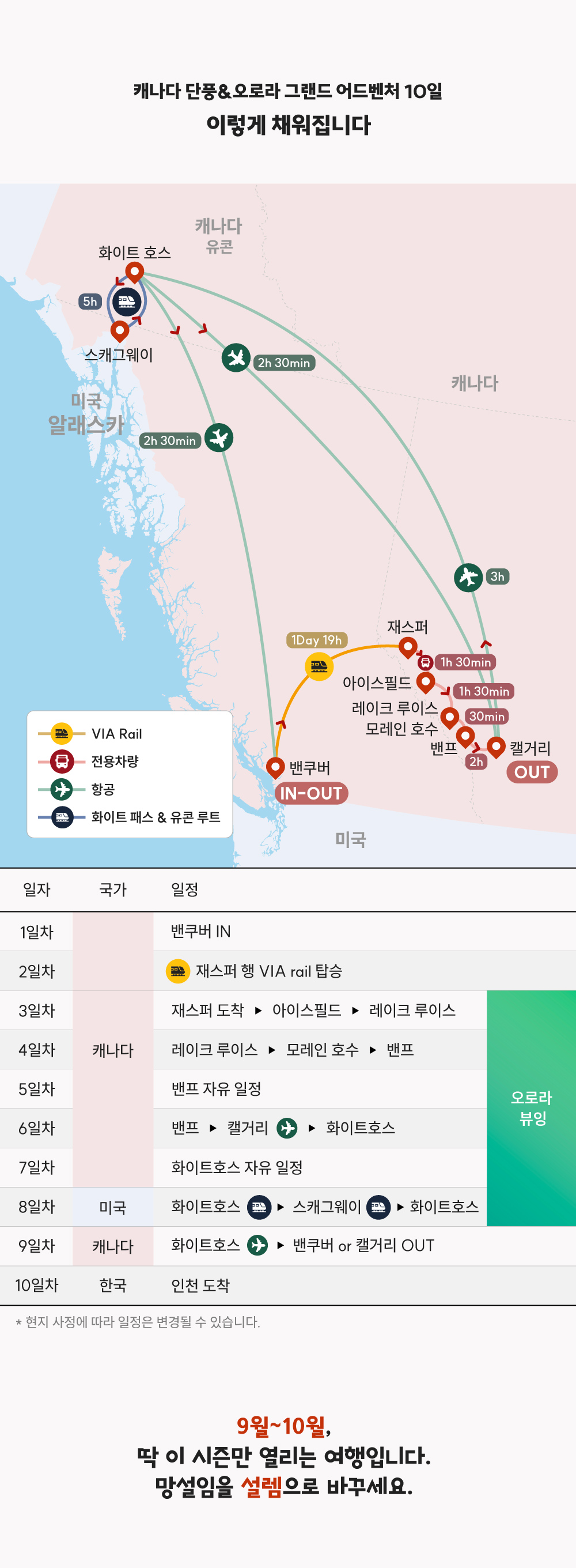 캐나다 단풍 오로라 여행 10일 (밴쿠버+재스퍼+레이크 루이스+밴프+화이트호스+알래스카)